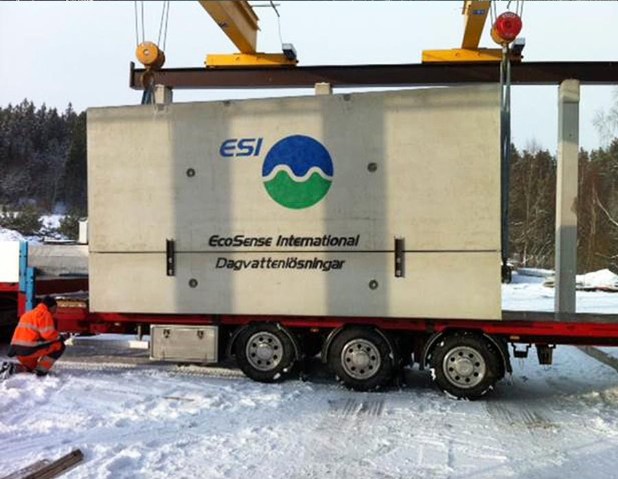 Tillverkningsenheten i Ronneby har tillverkat både pumpstationer och avskiljare till detta projekt. Till dagvattenpumpstationen levererades även en reservkraftsbyggnad med invändiga mått ca 15 x 6 m. Avskiljarna har tillverkats i samarbete med amerikanska EcoSense.
