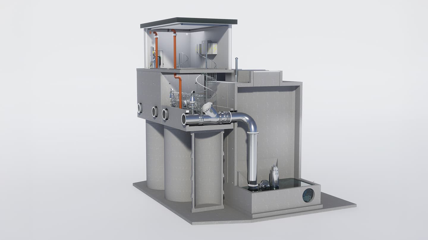 Storm Water Station dagvattenpumpstation är utformad efter krav och rekommendationer enligt VAV P47 och P90. Stationen är CE-märkt enligt maskindirektivet.