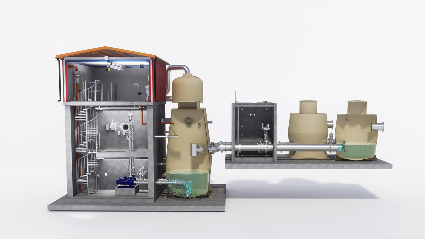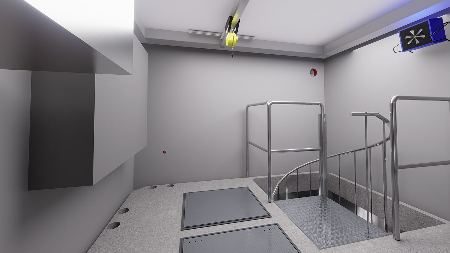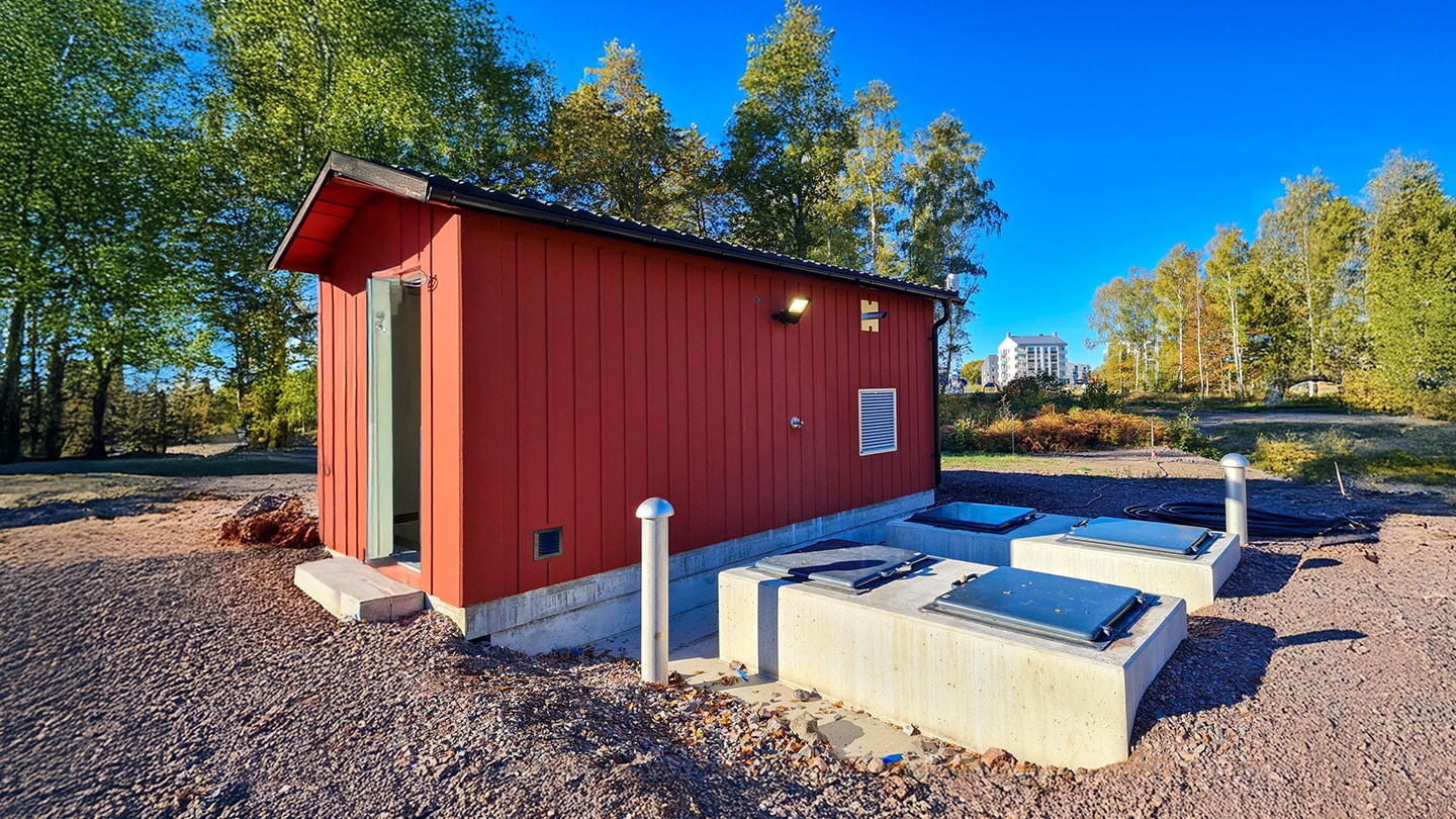 Med maskinrum under mark kan pumparna placeras under den lägsta vattennivån i sumpen utan att de behöver sänkas ner i själva sumpen. Vi behåller alla fördelar med ett positivt tryck på vattenpelaren i pumpen och får en mycket bättre arbetsmiljö för underhåll av stationen.
