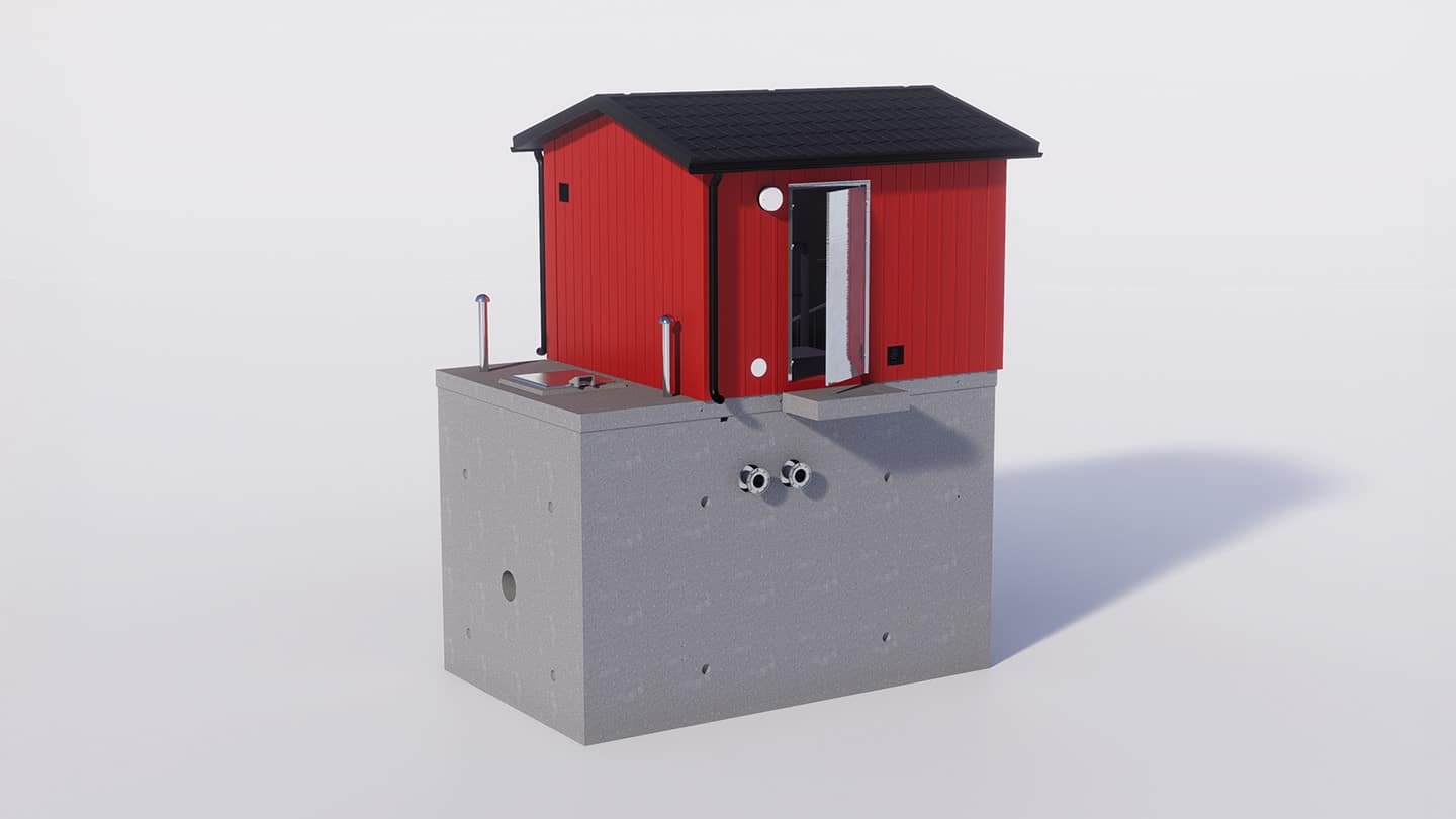 Överbyggnadens storlek anpassas efter utformningen av maskinrummet. Precis som våra andra stationer kan VM Pumpstation byggas med olika fasader och inredning för att passa beställarens standard eller önskemål.